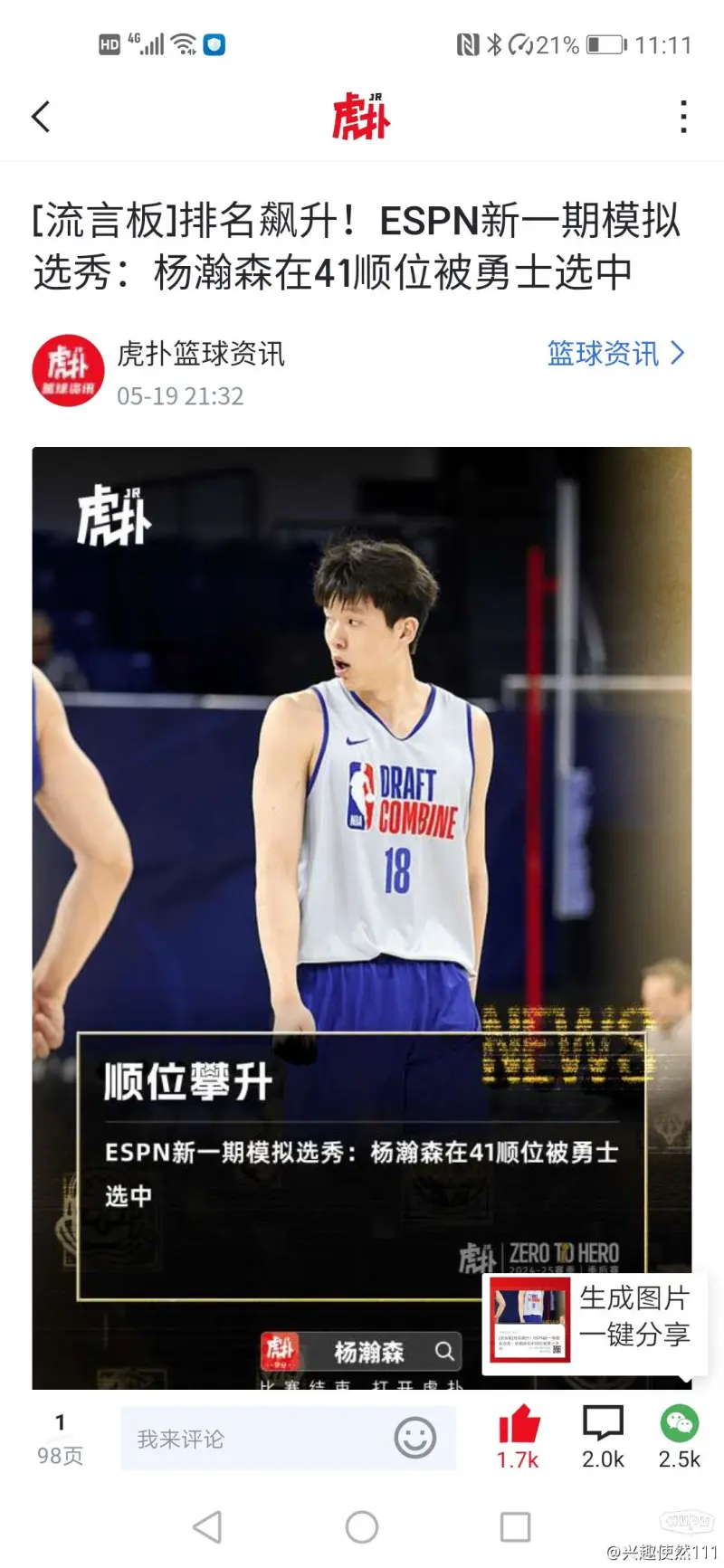 1 我认为杨瀚森不太可能一轮被选中 因为参加联合试训的一般都很难进一轮 杨瀚森经过联合试训后行情是提升的 二轮被选中问题不大 不知道勇士感兴趣吗